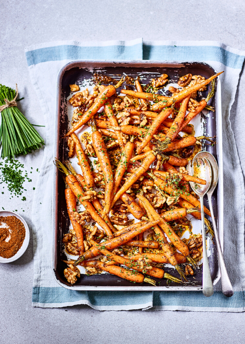 Make the sides the star of the show with these Cajun Glazed Carrots – roasted with California Walnuts for extra crunch and added flavour. This recipe uses baby topped carrots, but you can also use chantenay carrots or wedges of parsnips instead.