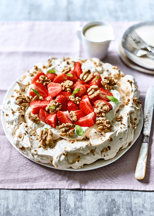 For a break from the chocolate, why not whip up this irresistibly tasty California Walnut & Strawberry Pavlova for dessert. In need of a smaller pud, try making 6-8 individual pavlovas instead of a large one and top with a selection of fruits of your choice.